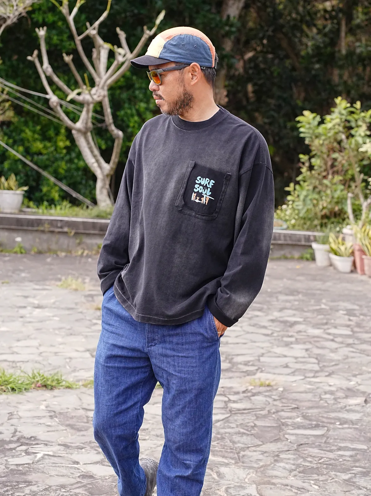 水洗+泥染做舊款假口袋衝浪魂長袖上衣